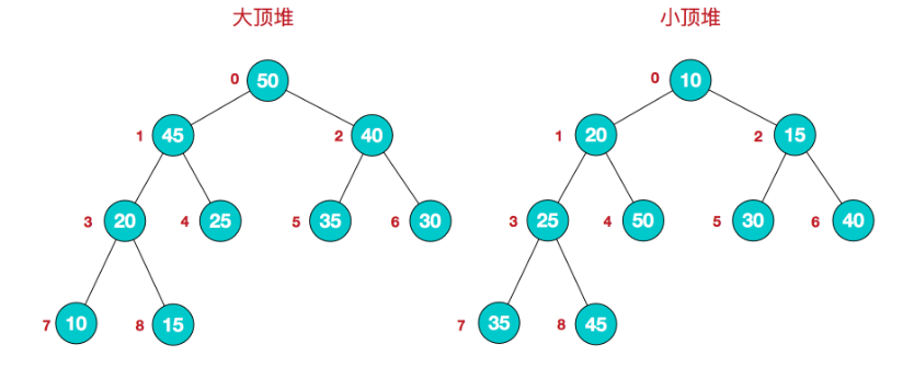 大顶堆:arr[i] >= arr[2i+1] && arr[i] >= arr[2i+2]