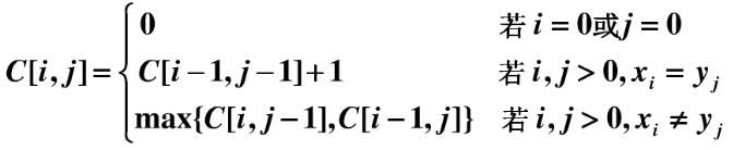 解法:c[i,j]表示:(x1,x2….xi) 和 (y1,y2…yj) 的最长公共子序列的长度。