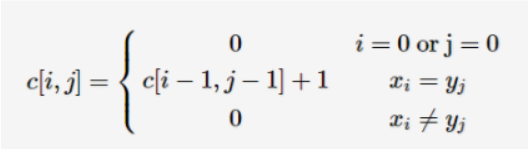 解法:c[i,j] 表示:(x1,x2….xi) 和 (y1,y2…yj) 的最长公共子串的长度。